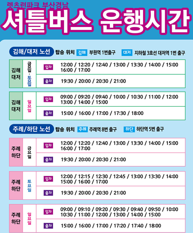 📌렛츠런 파크 부산경남 2024년 셔틀버스 운행시간